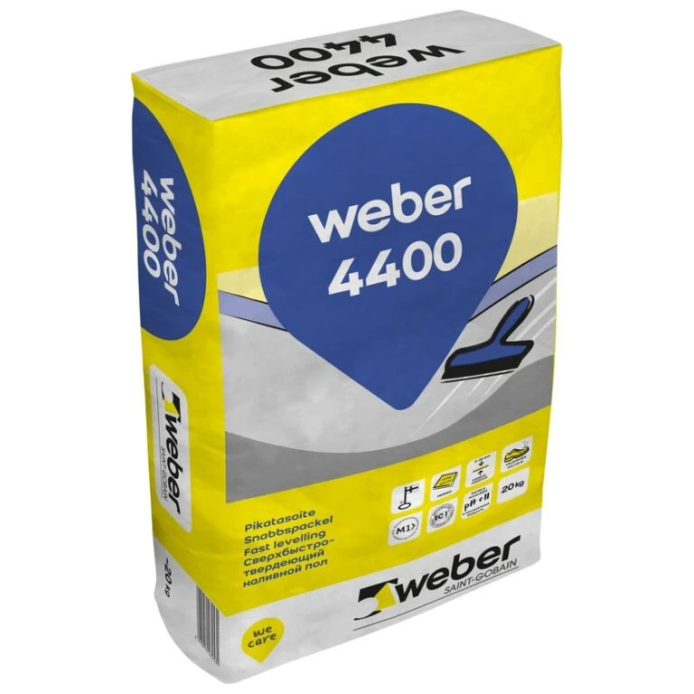 weber 4400 sobib nii siseruumide betoonpõrandate kui nt välisterasside, -treppide ja rõduplaatide tasandamiseks, silumiseks ja aukude, pragude kiireks täitmiseks. Kasutatakse ka vannitubade, pesu-, elu-, tööstusruumide, kontorite ja muude üldkasutatavate ruumide kiireks põrandatasanduseks ning kallete andmiseks (näiteks trapid, erinevate tasapindade üleminekud jne.), kui tööde teostamisega on kiire. Lisatava veekogusega saab muuta segu kasutusvaldkonda, õhukesest laustasandusest kuni paksemate kallete ja aukude täitmiseni (kuni 50 mm). Toode tagab vähenõudliku põrandakatte alla vajaliku sileduse. Sobib kokku kõikide tavakasutuses olevate liimide ja põrandakattematerjalidega. Tarnitakse valmis kuivseguna terasuurusega kuni 0,3 mm. Segu on kaseiinivaba ning pärast kuivamist niiskust tõrjuv.